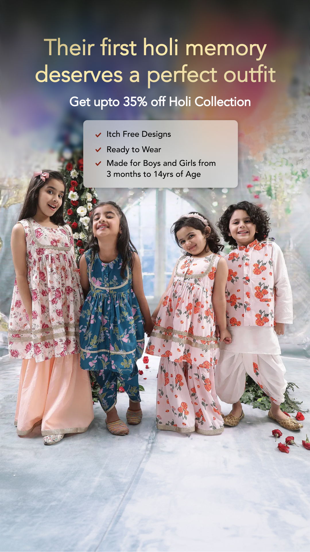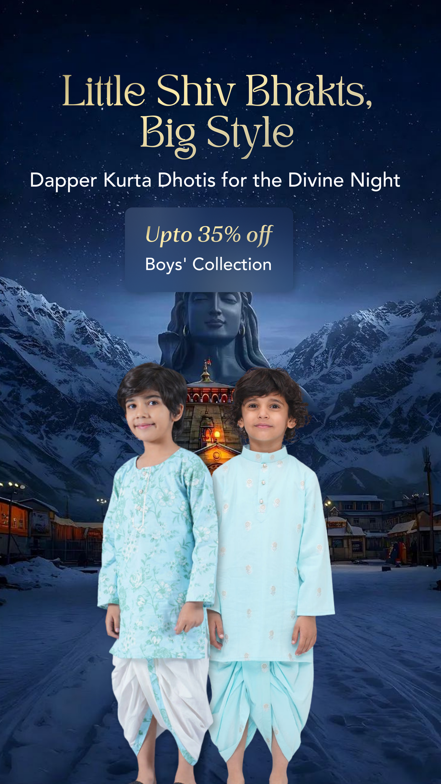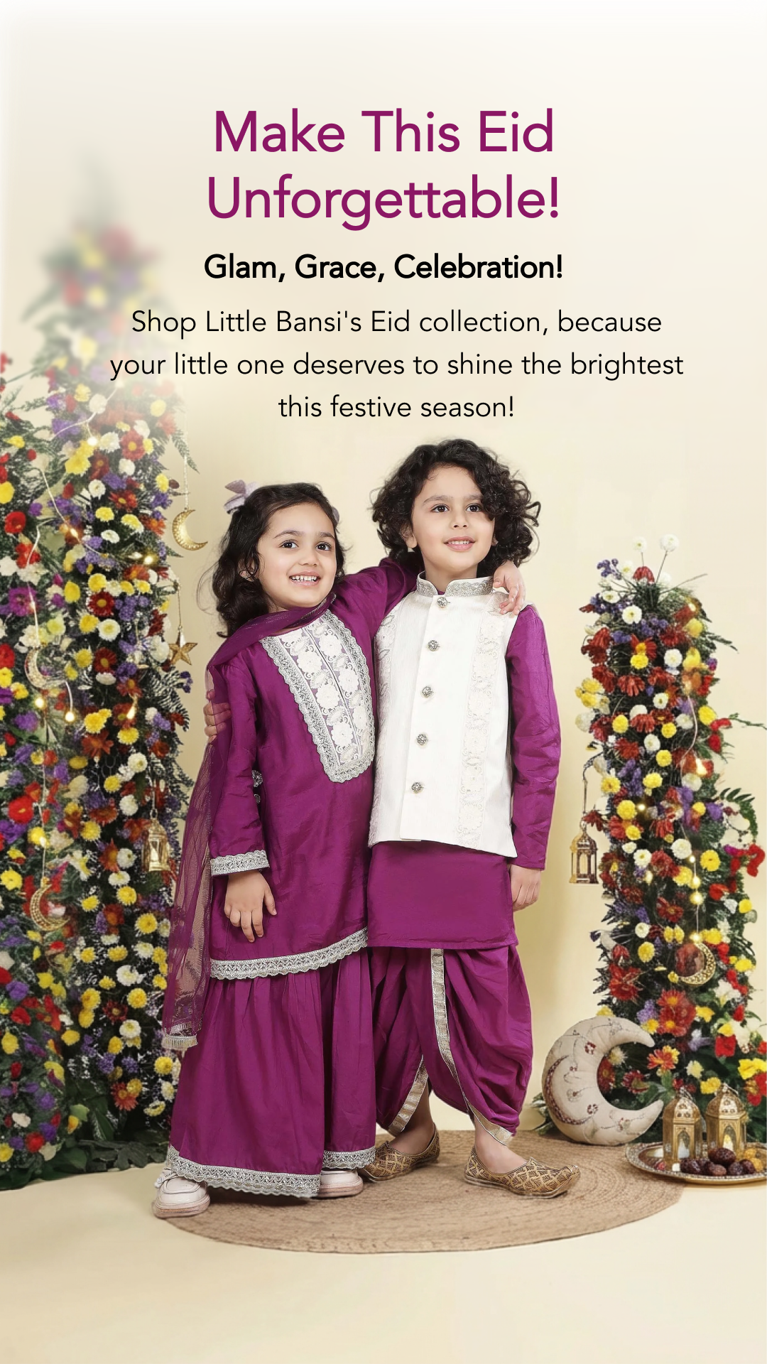 Little Bansi Boys Multi Color Thread Work Kurta with Pearl buttons & Dhoti