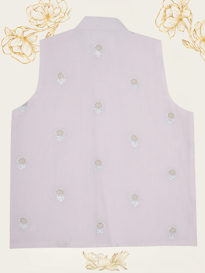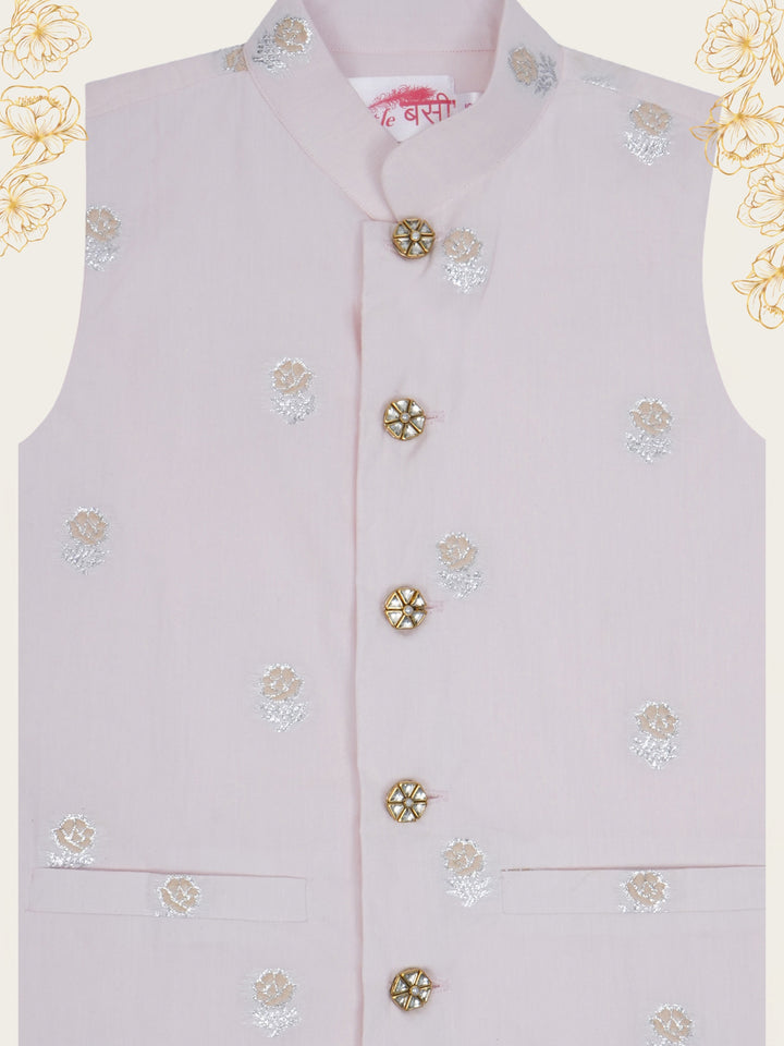 Boys Pink Rose Embroidered Nehru Jacket