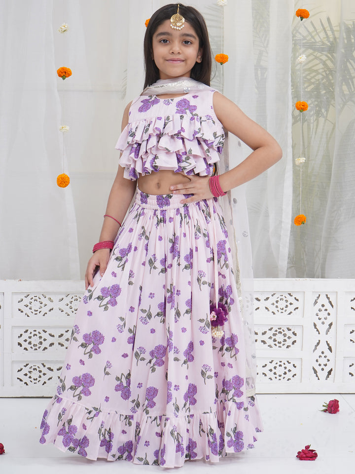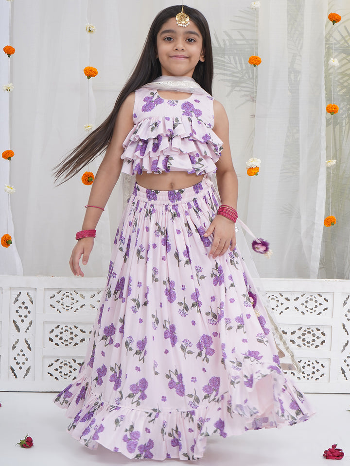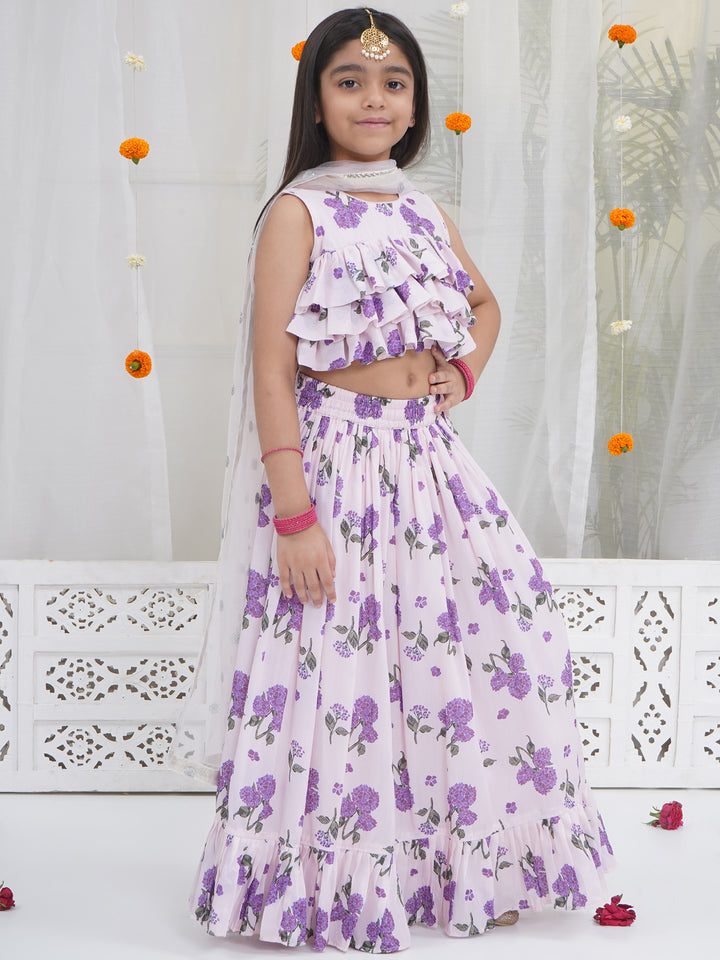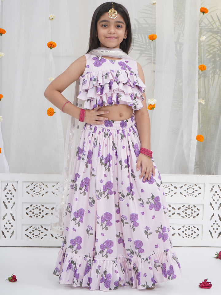Girls Lavender Bloom Festive Crop Top Lehenga Set
