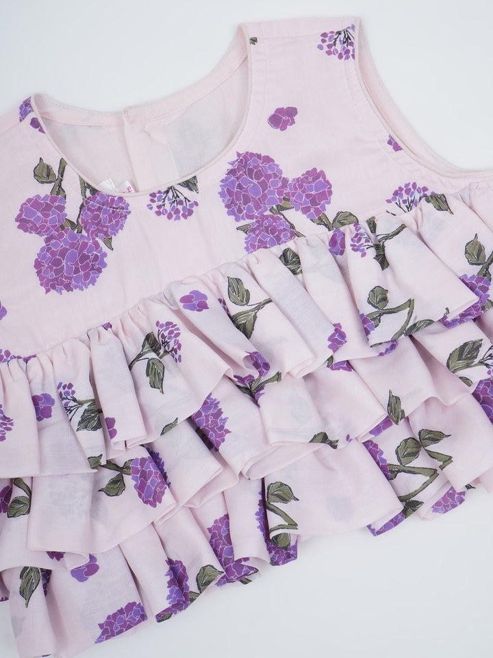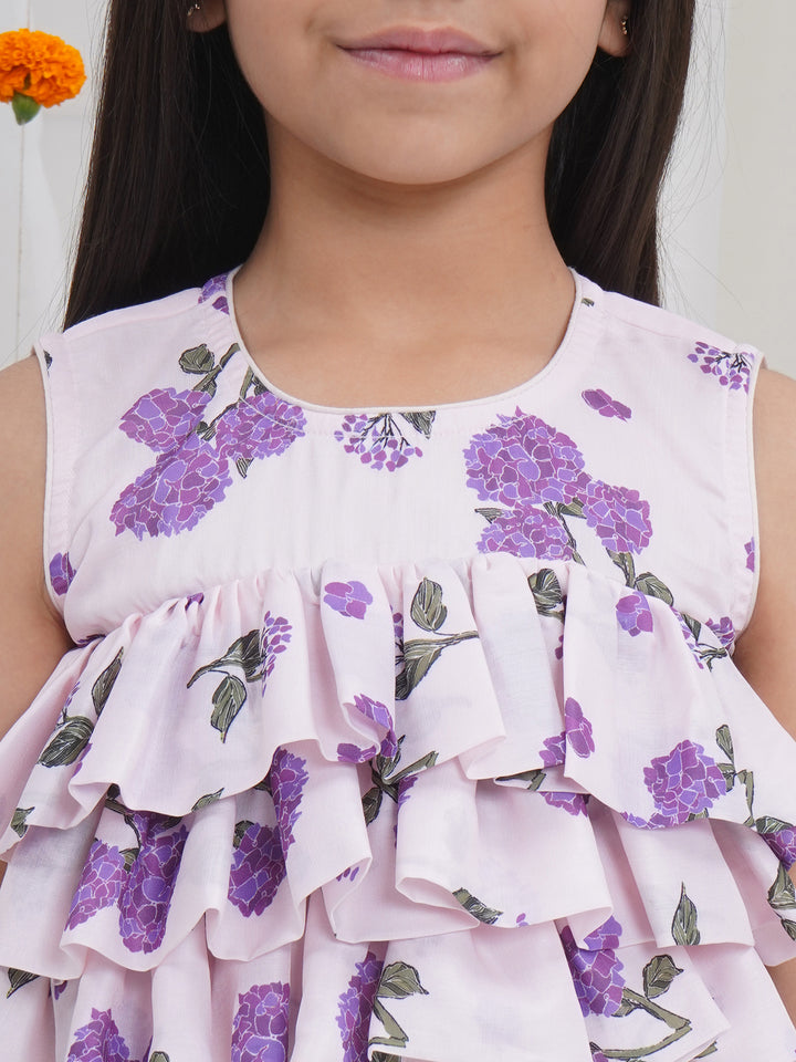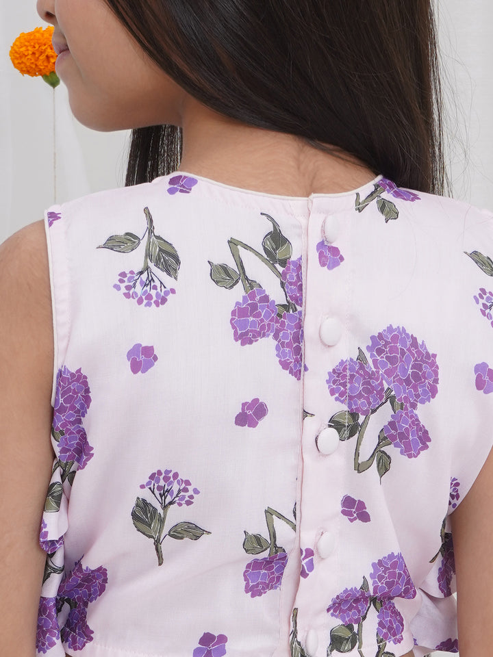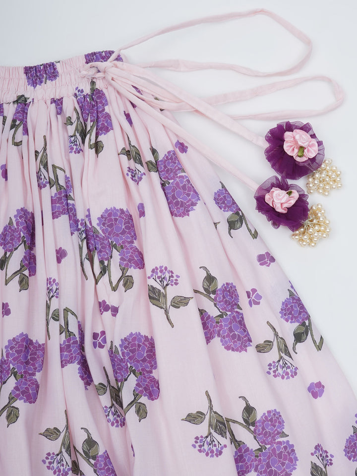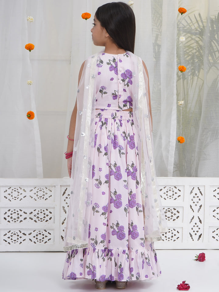 Girls Lavender Bloom Festive Crop Top Lehenga Set